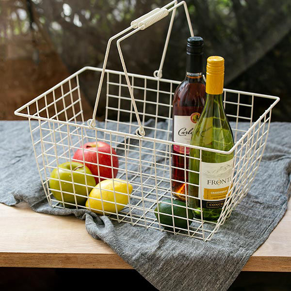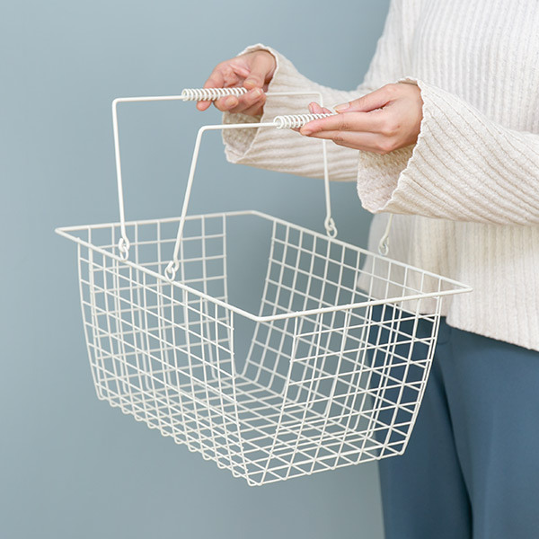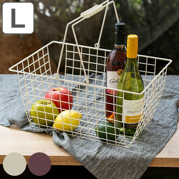 ワイヤーバスケット L 幅39.5×奥行28×高さ19.5cm ( 収納バスケット バスケット 角型 収納 持ち手付き 小物収納 ワイヤー スクエア型 四角 持ち運び ストッカー 北欧 おしゃれ )