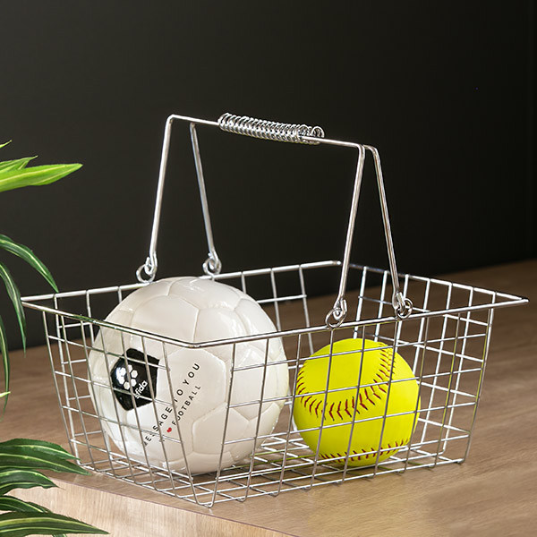 シンプルなデザインのワイヤーバスケットです。中身が見えるのでどこに何をしまったのかわかりやすく、スクエア型でたっぷり収納できてインテリア性も兼ね備えているので重宝しそうです。