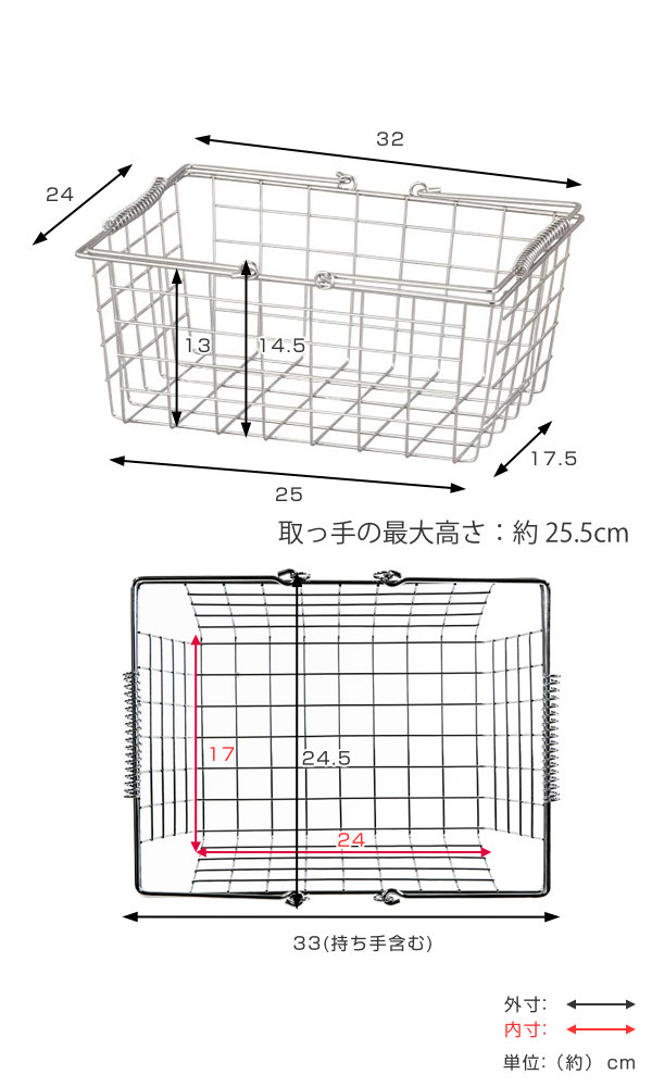 ワイヤーバスケット M 幅32×奥行24×高さ13cm クロム ( 収納バスケット バスケット 角型 収納 持ち手付き 小物収納 ワイヤー スクエア型 四角 持ち運び ストッカー 北欧 おしゃれ )
