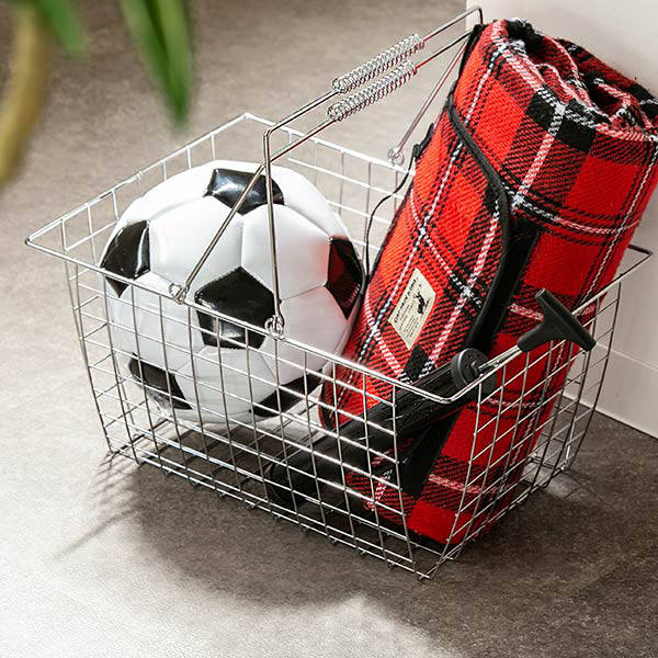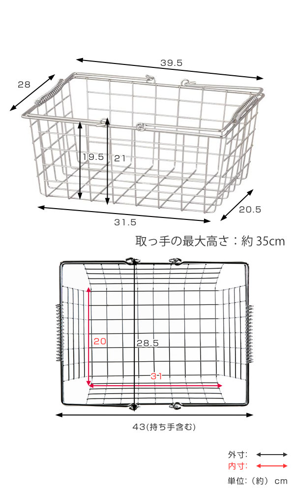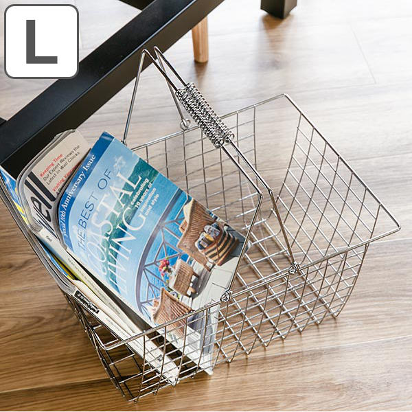 ワイヤーバスケット L 幅39.5×奥行28×高さ19.5cm クロム ( 収納バスケット バスケット 角型 収納 持ち手付き 小物収納 ワイヤー スクエア型 四角 持ち運び ストッカー 北欧 おしゃれ )