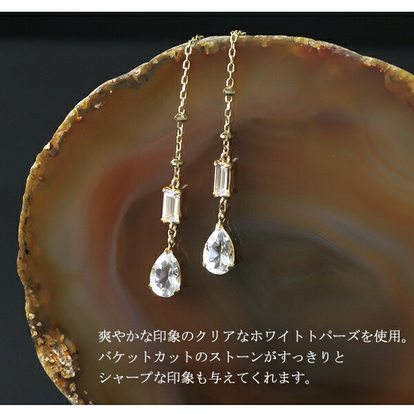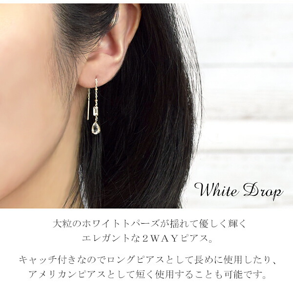 大粒のホワイトトパーズが揺れて優しく輝くエレガントな2WAYピアス。