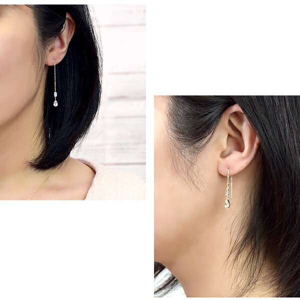 アメリカンピアス ロングピアス チェーンピアス ゴールドピアス ポストピアス 10金ピアス K10 10金 イエローゴールド YG カットボール キラキラ プレゼント フェミニン 綺麗 上品 華やか デイリー 普段使い パーティー 着回し 2way 2通り ドロップ 滴 雫 バケット 華奢 繊細 揺れる