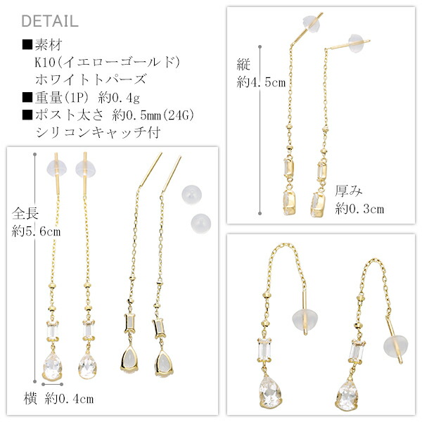 【PINKY&DIANNE-Bijoux-】 K10 ゴールド ホワイトトパーズ 2WAY アメリカンピアス (2P/両耳用)