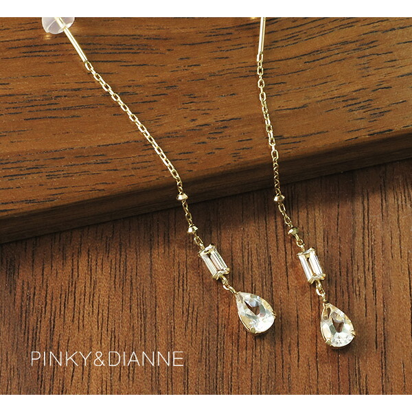 ピンキー&ダイアン 2WAY ホワイトトパーズ ゴールド アメリカンピアス 2P 両耳用 K10 10金 10k チェーンピアス アメリカン ピアス ロング ブランド レディース ピンキーアンドダイアン