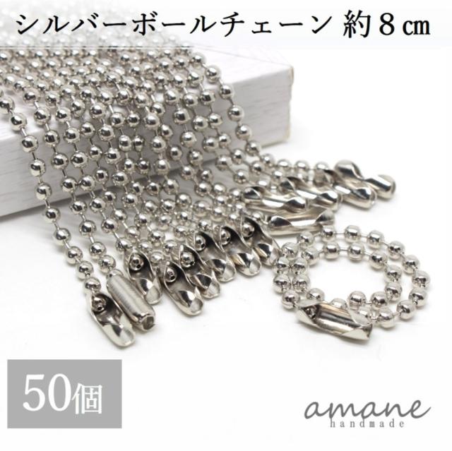 ボールチェーン シルバー 50個 全長約8cm ボール径2.5mm 玉鎖 ハンドメイドパーツ