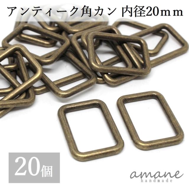 角カン 内径20mm 20個 アンティークゴールド 金古美 バッグ 材料 ハンドメイドパーツ