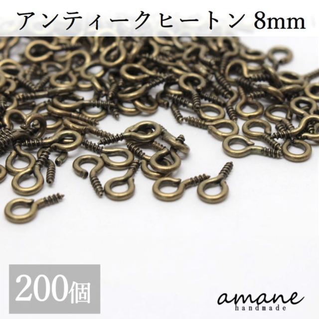 ヒートン 金具 アンティークゴールド 金古美 8mm 200個 根付け用金具 アクセサリー用
