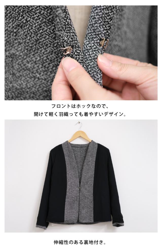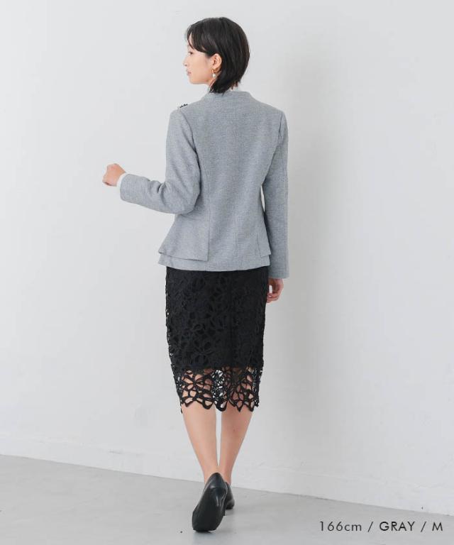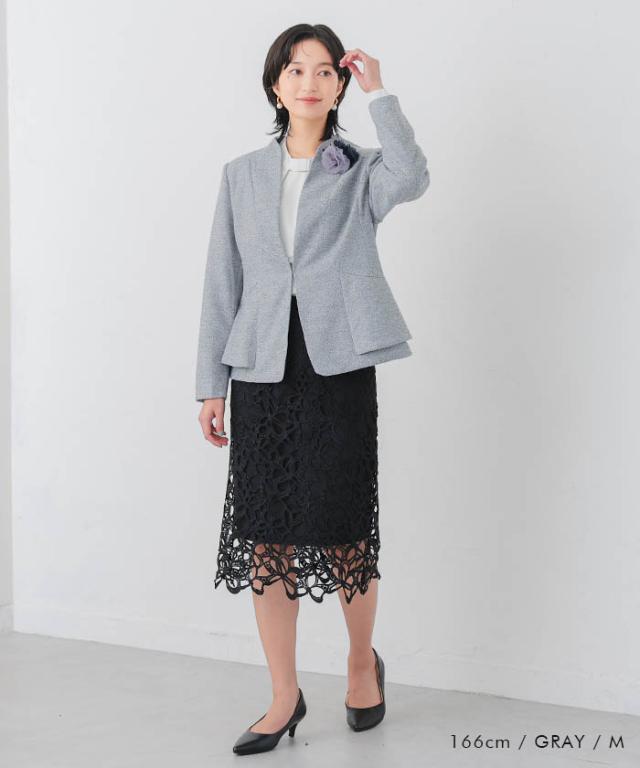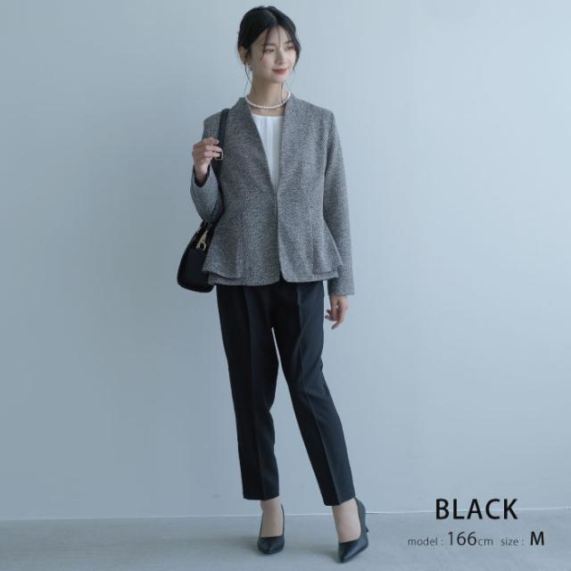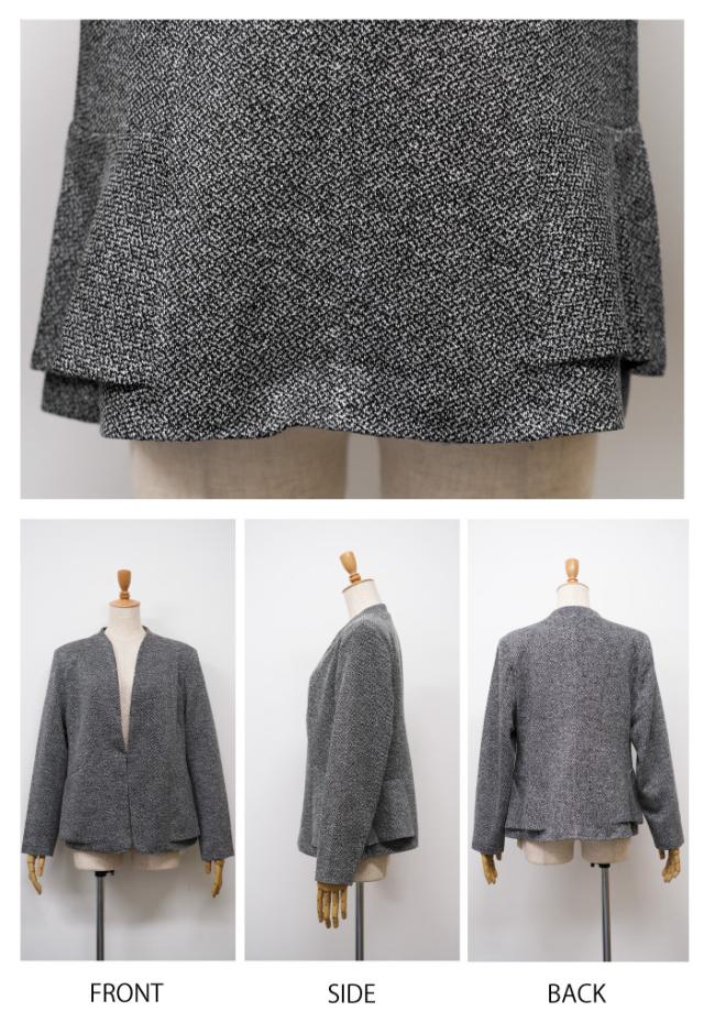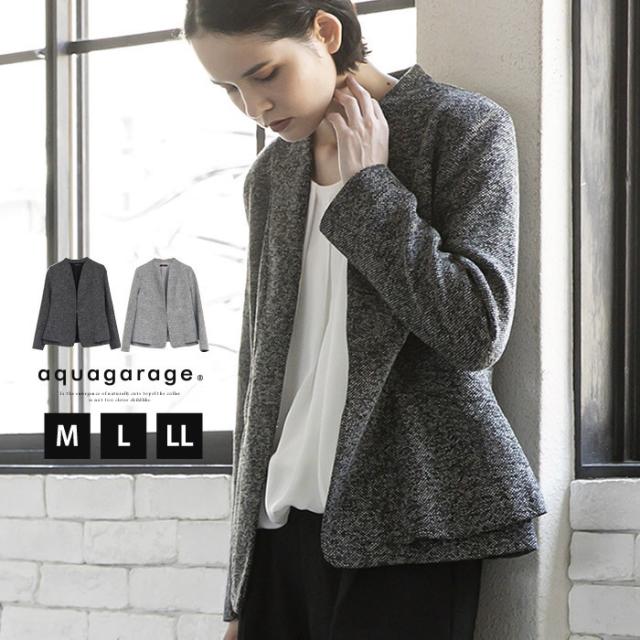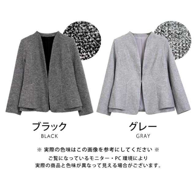 サイドペプラムノーカラージャケット レディース 秋 冬 長袖 M L セレモニー| アクアガレージ aquagarage