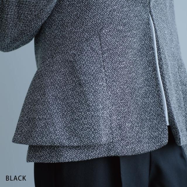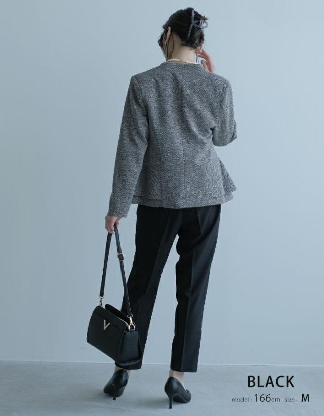 きちんと感も華やかさもある絶妙デザイン!サイドペプラムノーカラージャケット。