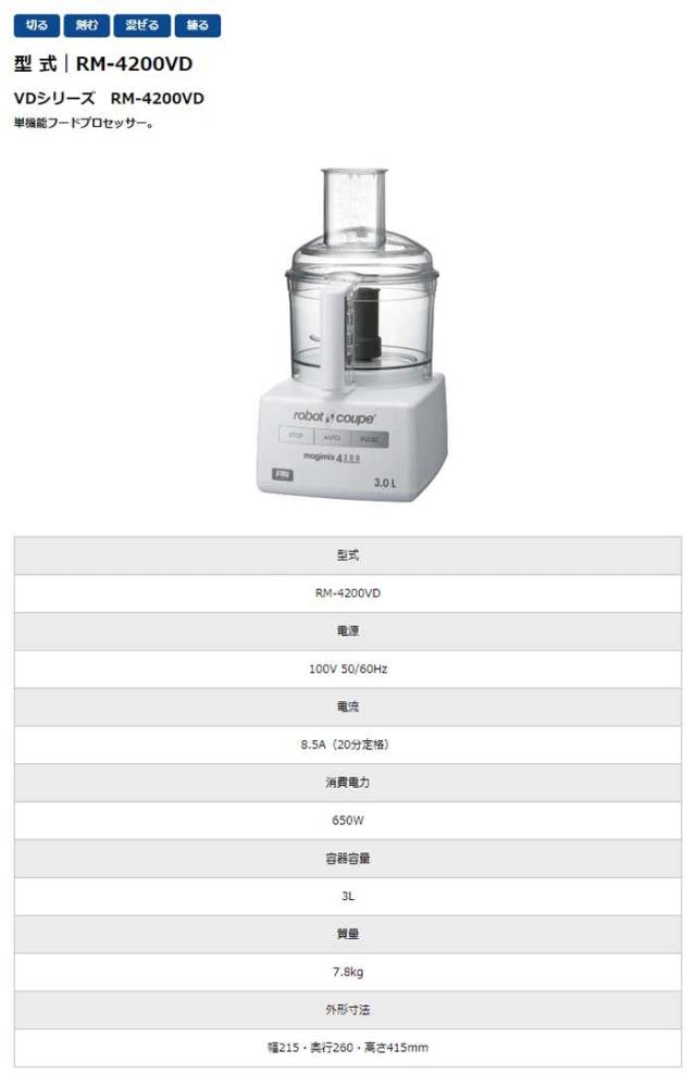 沖縄・離島配送不可 代引不可 フードプロセッサー ロボクープ マジミックス 単機能フードプロセッサー 容器容量3L VDシリーズ FMI エフエムアイ RM-4200VD