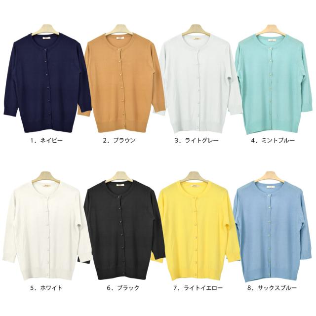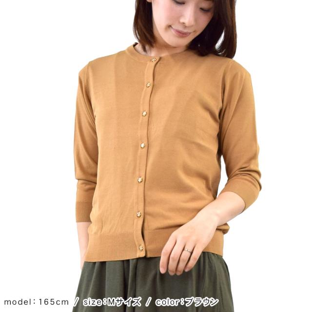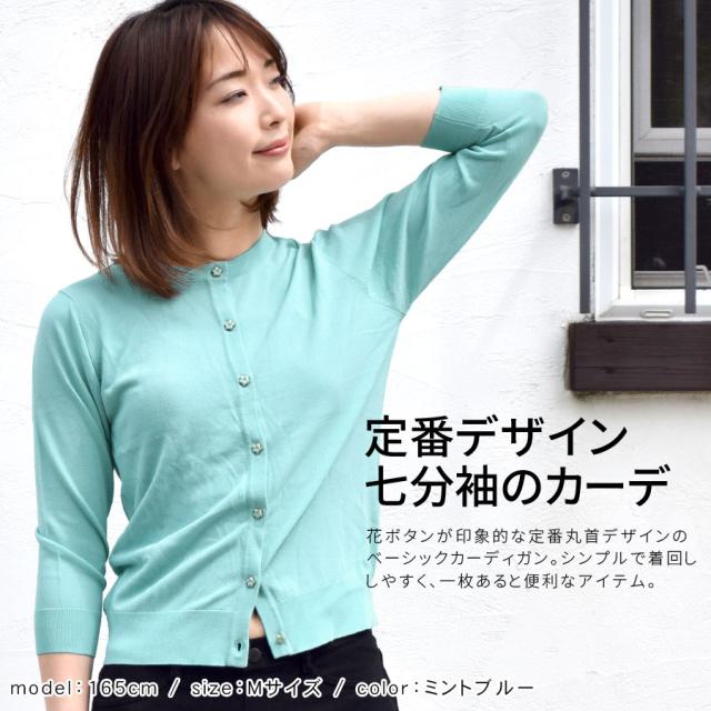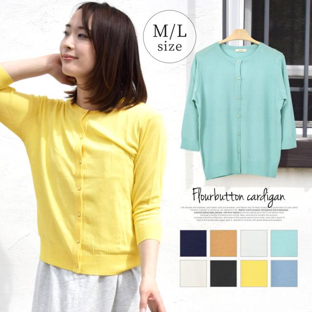 カーディガン レディース 長袖 七分袖 薄手 丸首 花ボタン フラワー シンプル 無地 UVケア 紫外線対策 冷房対策 (bdg423)