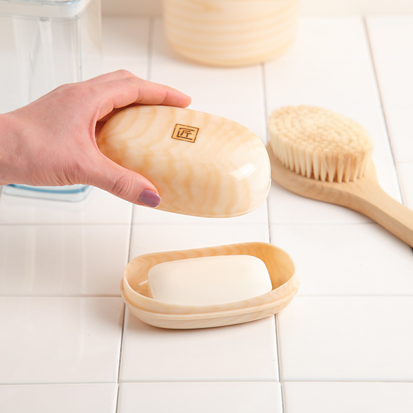 柔らかい色彩の木目調の模様が特徴的な石けんケースです。暖かみのある木目調は優しい雰囲気でどんなバスルームにもぴったりです。リアルな木目模様は表面だけの着色ではないので、消えたりめくれたりしにくいです。