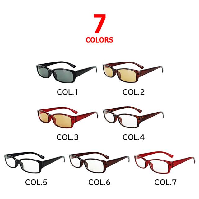 | COL1 フレームカラー:ブラック レンズカラー:スモーク COL2 フレームカラー:ダークブラウン レンズカラー:ブラウン COL3 フレームカラー:ダークワイン レンズカラー:ブラウン COL4 | レンズ素材:プラスチック(ハードコート) レンズ枠素材:プラスチック(塗装) テンプル素材:プラスチック(塗装) ●仕様 UVカット 99% ●可視光線透過率 スモーク:27% ブラウン:27% クリアー:87% |