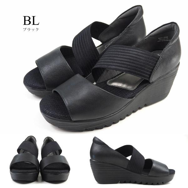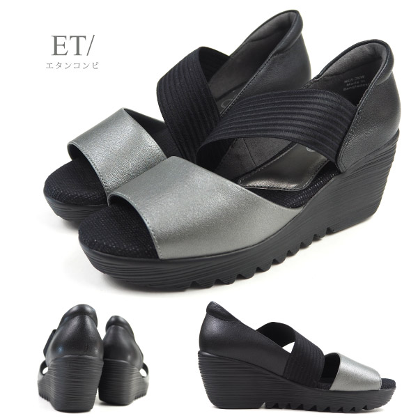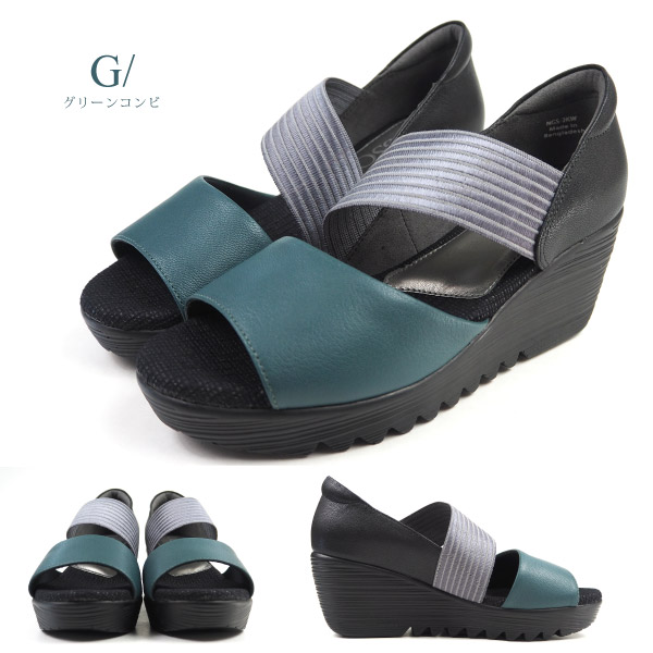 1051312★ ウェッジソール EEE ゴムバンド 黒 緑 オープントゥ レディース シューズ 婦人靴 女性用 おしゃれ オシャレ ファッション サンダル つっかけ 普段履き タウンシューズ sandals