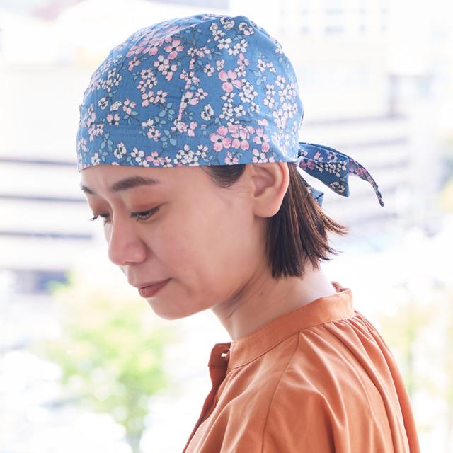 レディース 春 夏 春夏 春用 夏用 綿100% 青 緑 バンダナ バンダナ帽子 三角巾 大人 おしゃれ 頭巾 飲食店 料理 仕事 | コットン バンダナキャップ (21-C) bc21-c