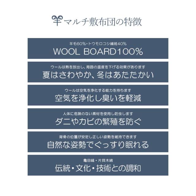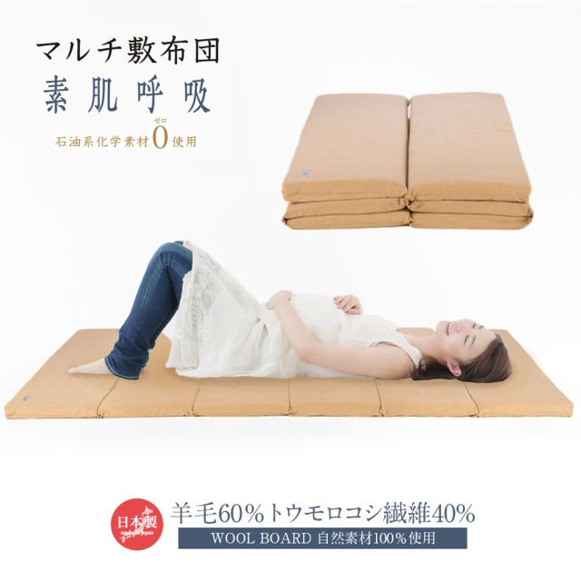 素肌呼吸 マルチ敷布団 自然素材100% WOOL BOARD 夏はさわやか 冬は暖かい 空気を浄化 防虫 防カビ 消臭 寝具 仰向け 横寝 カバー付 安眠 快眠 通気性
