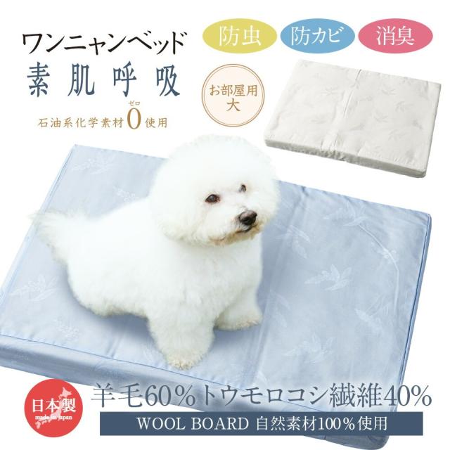 [ ワンニャンベッド お部屋用 大 羊まくら 素肌呼吸 ] ペット用ベッド 敷布団 マット 羊毛 トウモロコシ繊維 自然素材100% WOOL BOARD