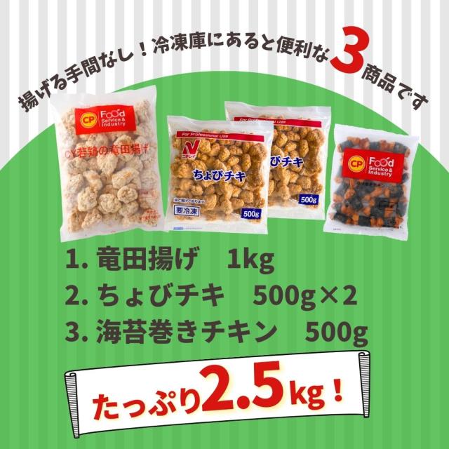 冷凍総菜 竜田揚げ ちょびチキ のり巻きチキン 3種 セット 2.5kg 送料無料 冷凍食品 唐揚げ 業務用 大容量 食品 おかず お弁当 弁当 おやつ まとめ買い お買い得 鶏肉 レンジ 簡単 時短 便利 ギフト 電子レンジで温めるだけ