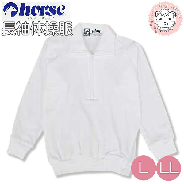 ホース 長袖 体操服 チャック ハーフジップ 長そで スクール 体操着 L/LL | horse 男の子 女の子 小学生 中学生 体操教室 体育 運動会 日本製