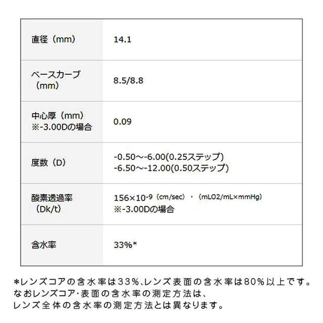 ■DIA/BC/中心厚:14.1/8.5、8.8mm/0.09mm(-3.00D)