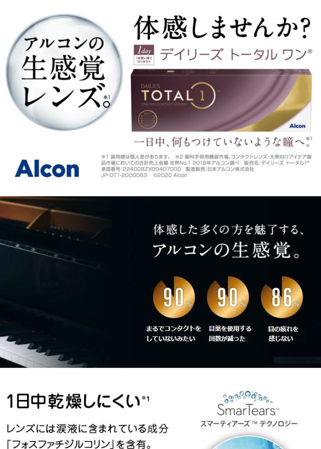 ドリコン 一日使い捨て コンタクト クリアコンタクト クリアレンズ 1日使い捨てコンタクトレンズ 1dayタイプ 1DAY ワンデー 30枚入り デイリーズトータルワン DAILIES TOTAL1 アルコン 生感覚レンズ シリコーンハイドロゲル うるおい 酸素たっぷり 乾燥 充血 何もつけていないような瞳 快適 UVカット 紫外線 処方箋
