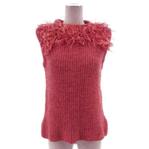 【中古】ヴゼット VOUSETES ニット ノースリーブ モックネック フリンジ コットン混 ピンク ピンクパープル