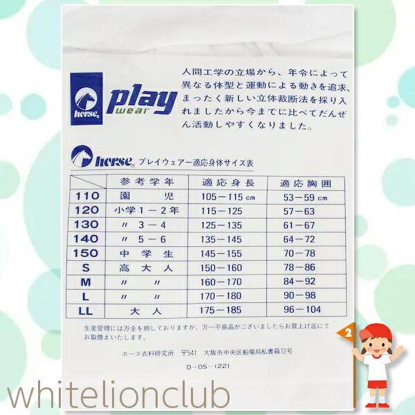 ホース 長袖 体操服 ヨークシャツ 長そで スクール 体操着 L/LL | horse 男の子 女の子 小学生 中学生 体操教室 体育 運動会 日本製