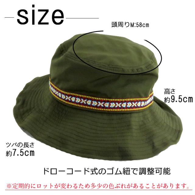 ■Mサイズ:頭周り・・約58cm、ツバの長さ・・約7.5cm、高さ・・約9.5m