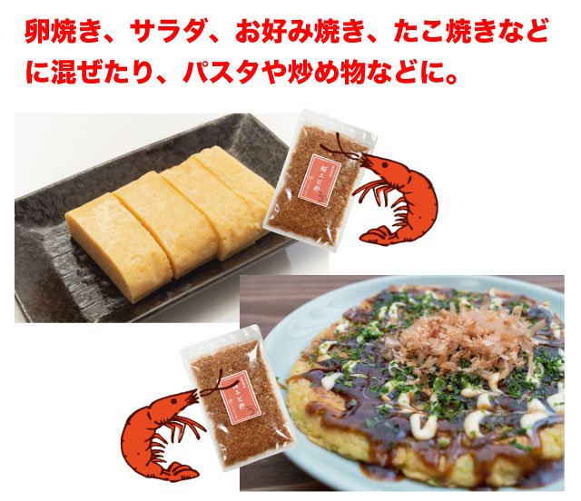 - 今までスーパーで買った小エビをすりつぶして料理に使っていましたが、手軽に使えるようになってありがたいです。 桜えびの風味もしっかりあって、よりおいしく料理に使えるようになりました。