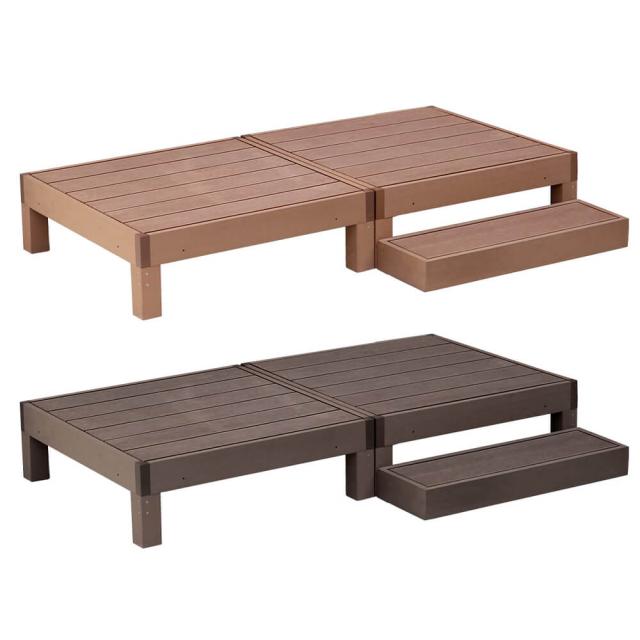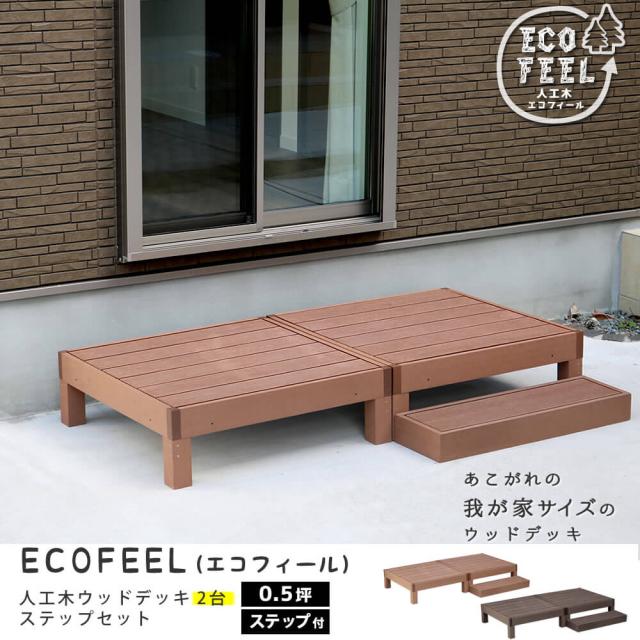 Ecofeel(エコフィール)人工木ウッドデッキ2台&ステップセット 手入れ簡単 人工木ウッドデッキ屋外用 ガーデン 送料無料