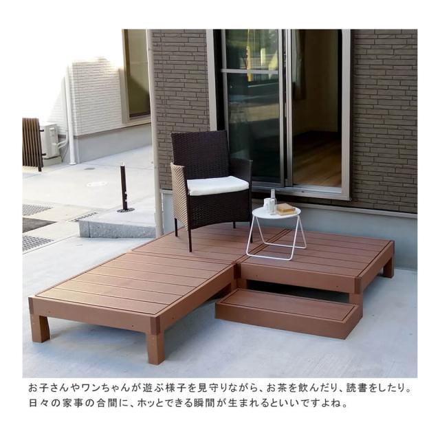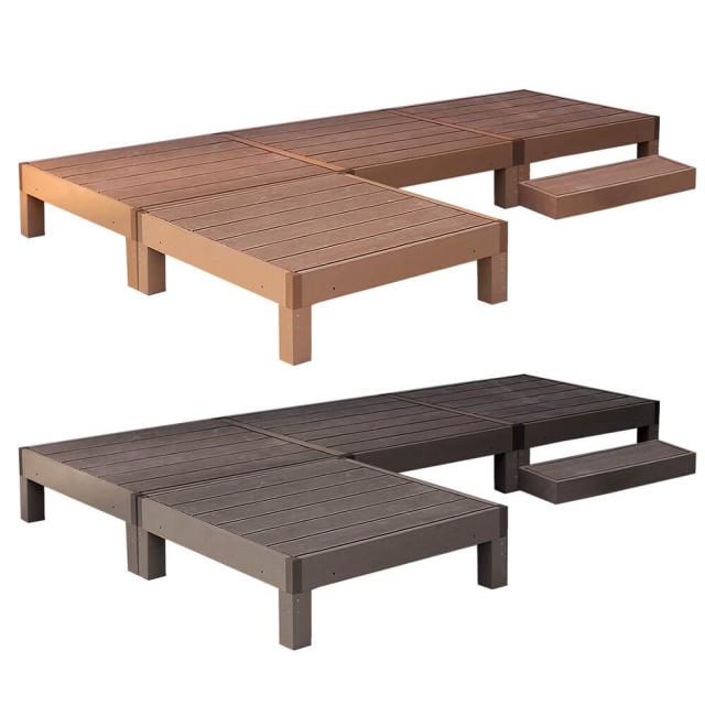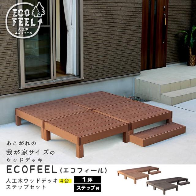 Ecofeel(エコフィール)人工木ウッドデッキ4台&ステップセット 手入れ簡単 人工木ウッドデッキ屋外用 ガーデン 送料無料