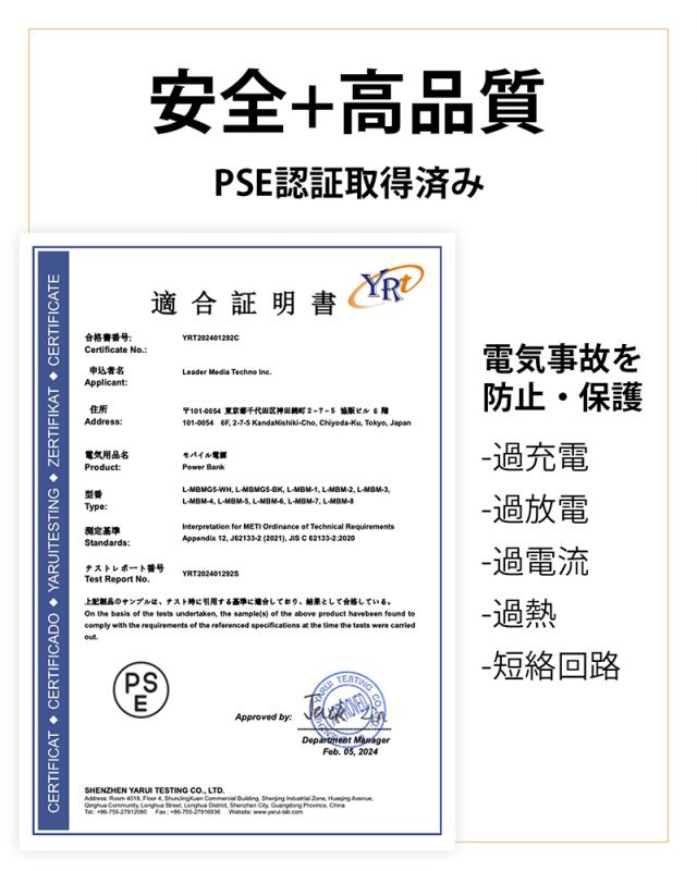 ● 認証:PSE、CE、FCC、RoHS