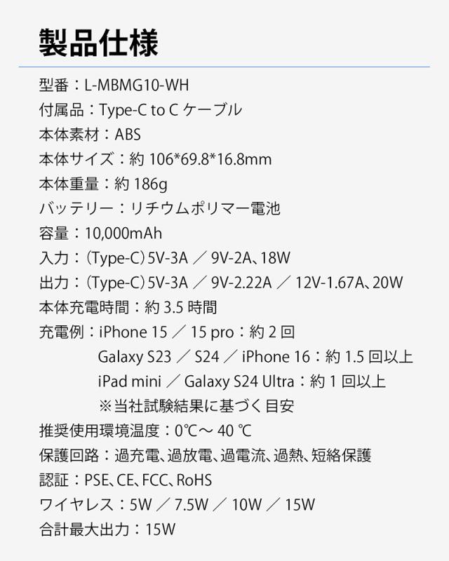 【商品名】:モバイルバッテリー L-MBMG10