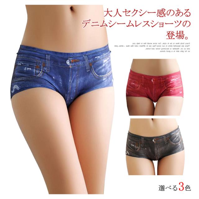 シームレスショーツ デニム風 3Dプリント ラインが出ない セクシー