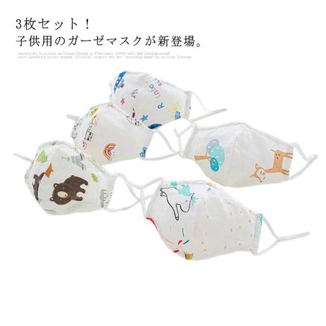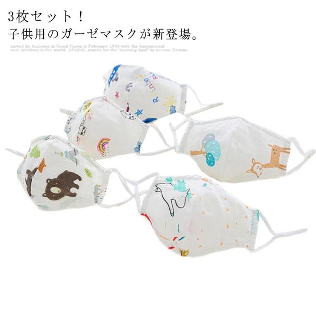 3枚セット マスク 布マスク 洗える ガーゼマスク キッズ用 女の子 男の子 通気性 予防対策 花粉対策 ウイルス対策 薄手 通学 幼稚園 通園 送料無料