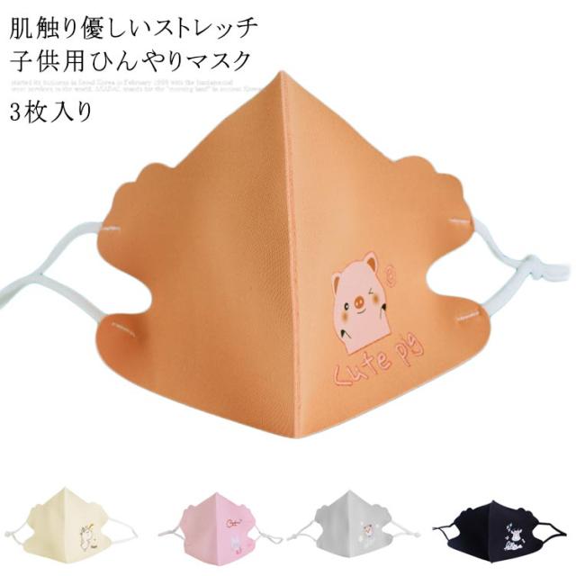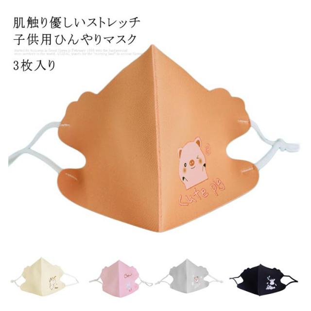 3枚入り 冷感マスク ひんやりマスク 子供用 クールマスク 立体マスク 子ども マスク 接触冷感 送料無料 夏用 涼しい 洗える 薄手 日焼け止め防止 ネコ ブタ 幼稚園 可愛い 女の子 男の子