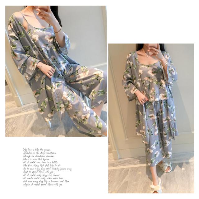 ルームウェア キャミソール/パンツ/ロングカーディガン 3点セット レディース 花柄