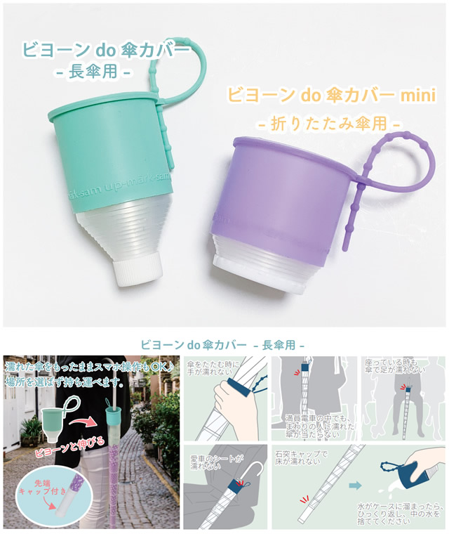 ビヨーン do 傘カバー/ビヨーン do 傘カバーミニ (防水ケース&シリコンひも付き) (定形外郵便送料無料) 人気 持ち運び 便利 傘カバー 傘ケース 雨傘 長傘 日傘 折傘 ビニール傘 折りたたみ傘 レイングッズ 満員電車 バス 通勤 通学 車 takenoko