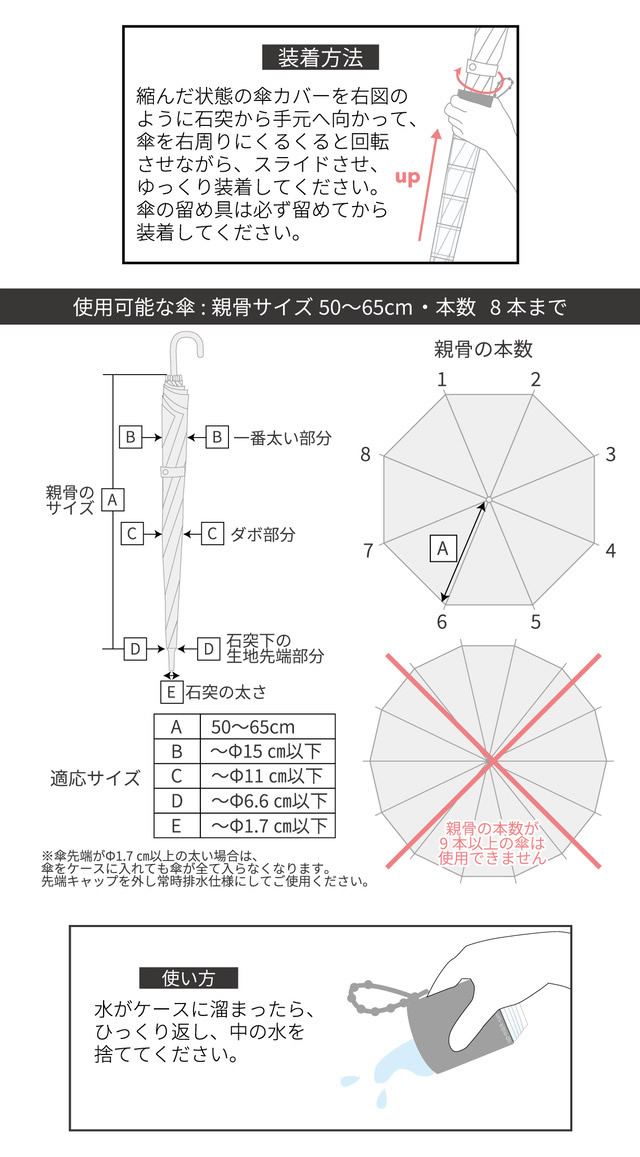 ビヨーン do 傘カバー:全長 700mm/口部分 50mm