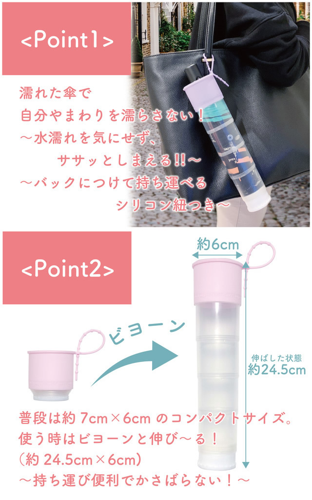 濡れない&濡らさない、びよーんと伸びるスマートな傘カバーで雨の日を快適に。