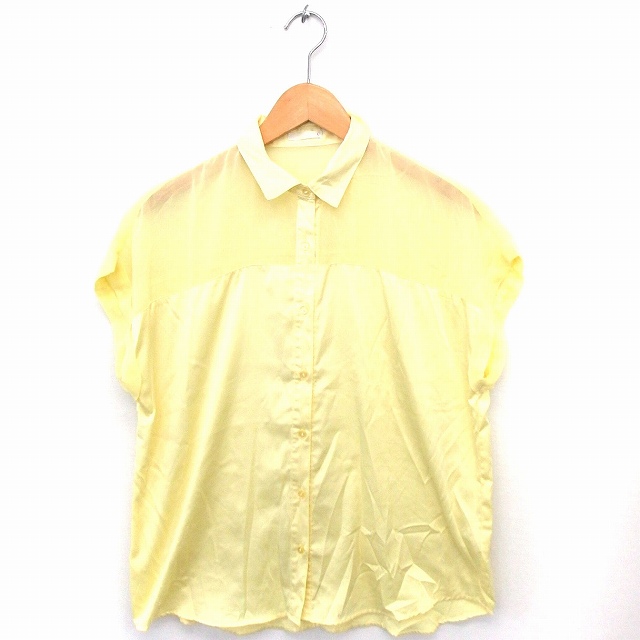 【中古】ジーユー GU シャツ ブラウス 切替 シースルー 光沢 フレンチスリーブ L イエロー 黄 /FT40 レディース