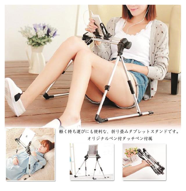 折りたたみ式 タブレット用スタンド どこでも寝ながらipad コンパクト 軽量 ペン付タッチペン付属