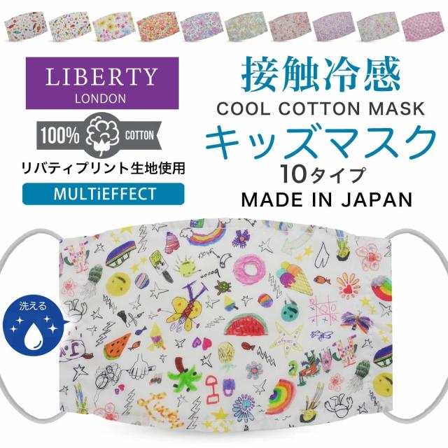 リバティプリント 生地 使用 子供 マスク 洗える 肌に優しい コットン100% 布マスク 接触冷感 息らく 日本製 選べる10色 綿100% 5才 6才 小学生 女の子 ウイルス対策 日本国内発送 ウイルス 花粉 ドット カラフルキャンディ 夏用