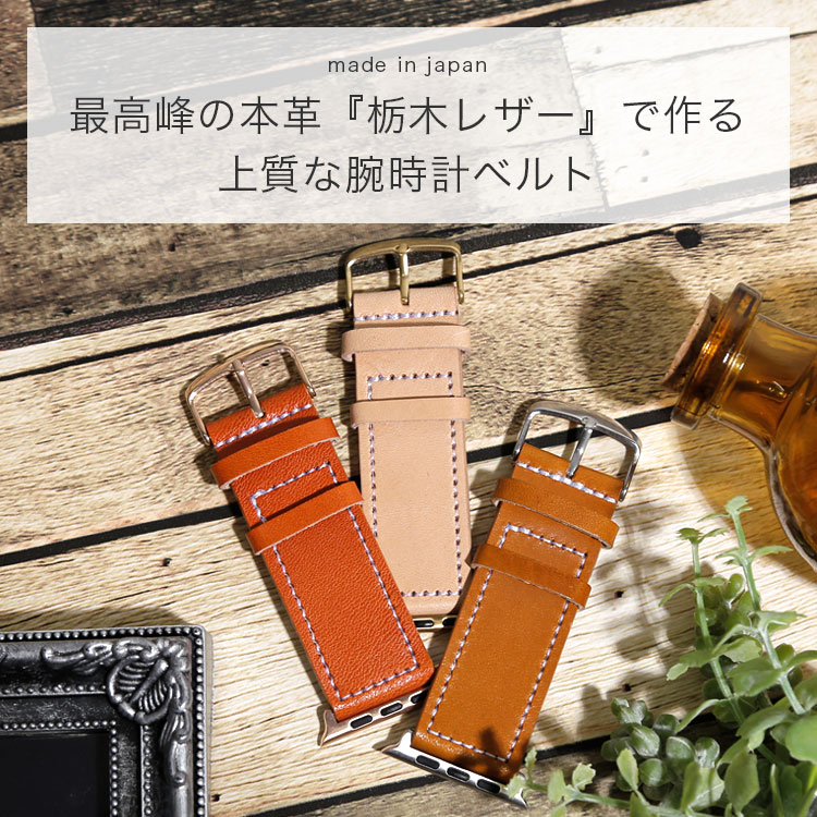 世界最高峰の日本製レザー『栃木レザー』で作る上質なapple watch用腕時計ベルトです。