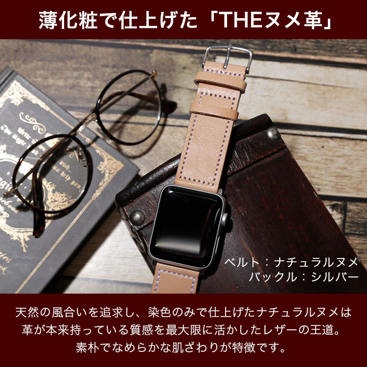 経年変化が表れやすいヌメ革は、持つ人の個性を映し出し深い色味を持つあなただけのアイテムへと成長していきます。いつも身に着ける腕時計ベルトに最適な素材です。