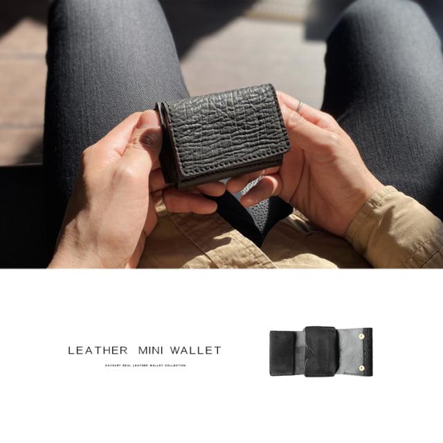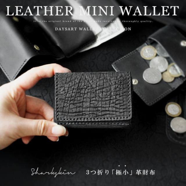 送料無料 デイズアート DaysArt レザーウォレット ミニ財布 ミニマルウォレット メンズ レディース ユニセックス 本革 オーストラリアオイルレザー シャークスキン 小銭入れあり ブラック 【ギフト】 lw222