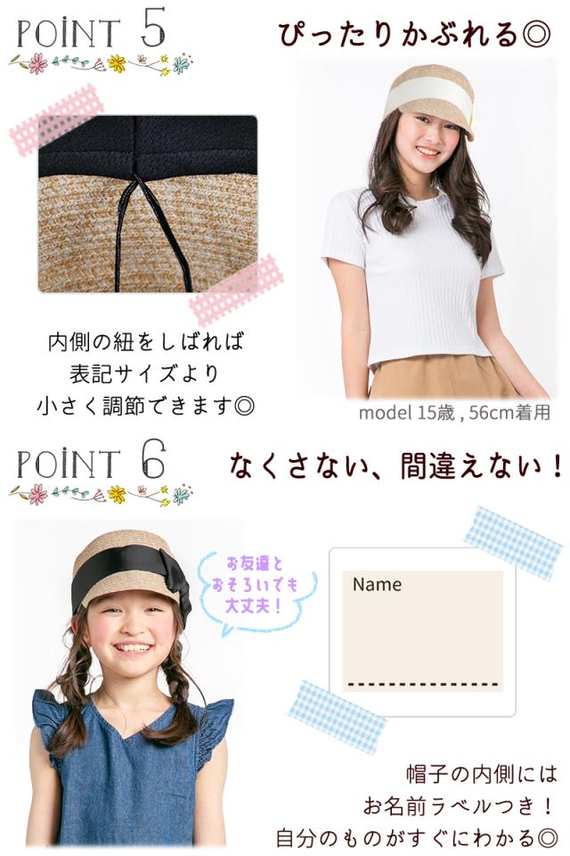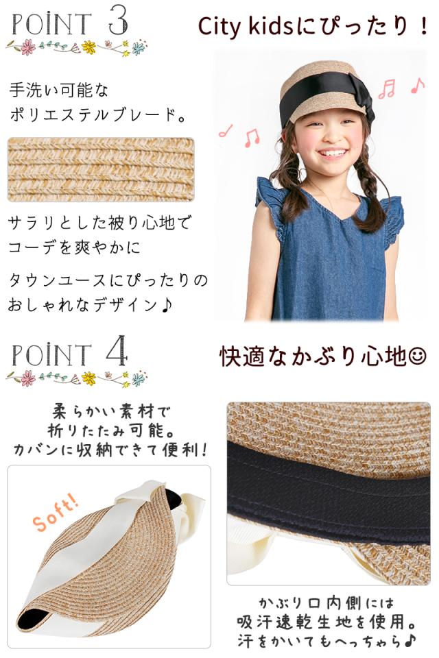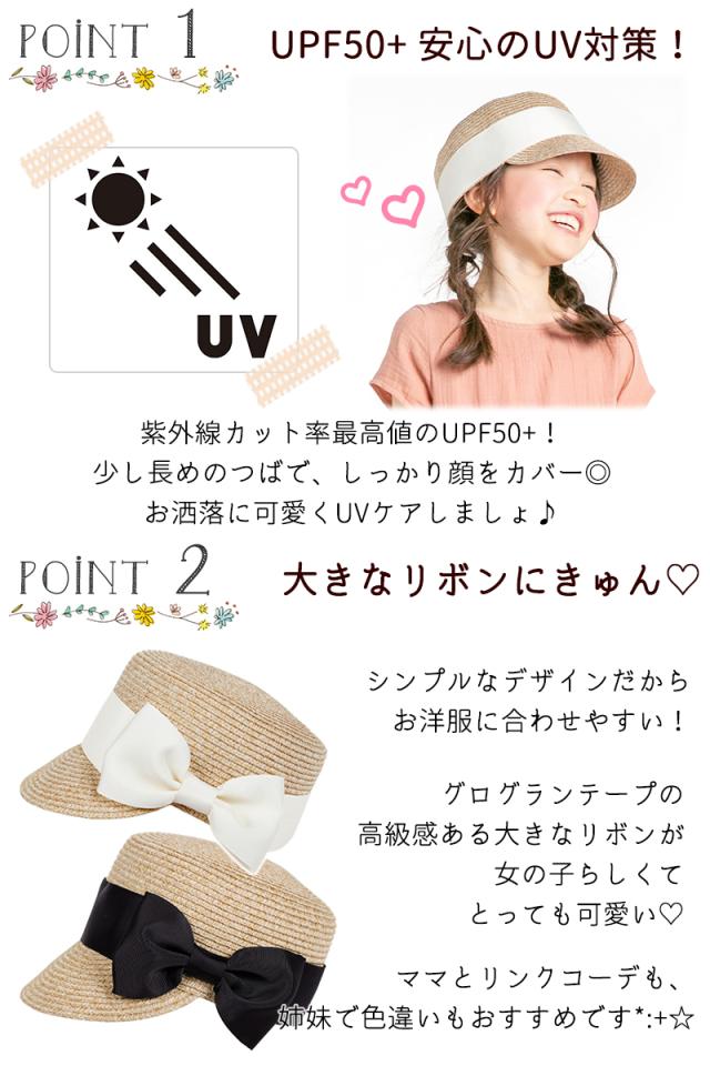 キッズ 帽子 女の子 UV キャップ キャスケット リボン 帽子 日よけ 可愛い UPF50+ 紫外線カット ナチュラル 麦わら おしゃれ 子供服 幼稚園 小学生 中学生 54 56 100 110 120 130 : bianca barca ビアンカ バルカ 送料無料