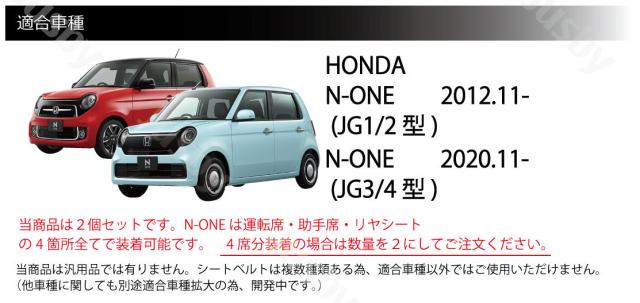 N-ONEは[運転席&助手席] & [リヤシート×2] すべて装着可能です。4席分必要な場合は数量を2個にしてご注文をお願い致します。