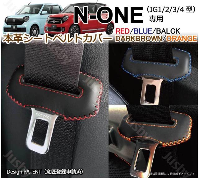 ホンダ N-ONE JG1/JG2/JG3/JG4 本革シートベルトカバー レザーカバー 赤 青 黒 他 ステッチ ドレスアップ 異音傷防止 パーツ アクセサリー 本皮 カスタム カラー