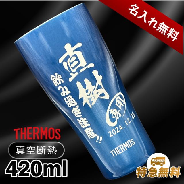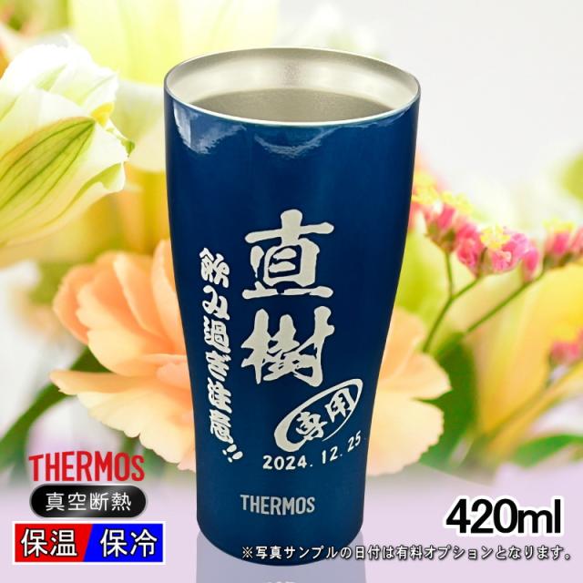 タンブラー サーモス 名入れ プレゼント 真空断熱 保温 保冷 ステンレス 名前入り 彫刻 刻印 グラス コップ 父の日 母の日 還暦祝い 退職 誕生日 結婚祝い 記念品 送別会 敬老の日 実用的 ネーム入れ 男性 女性 バースデー ギフト 420 ml 青 緑 JDY-420C 単品 C7